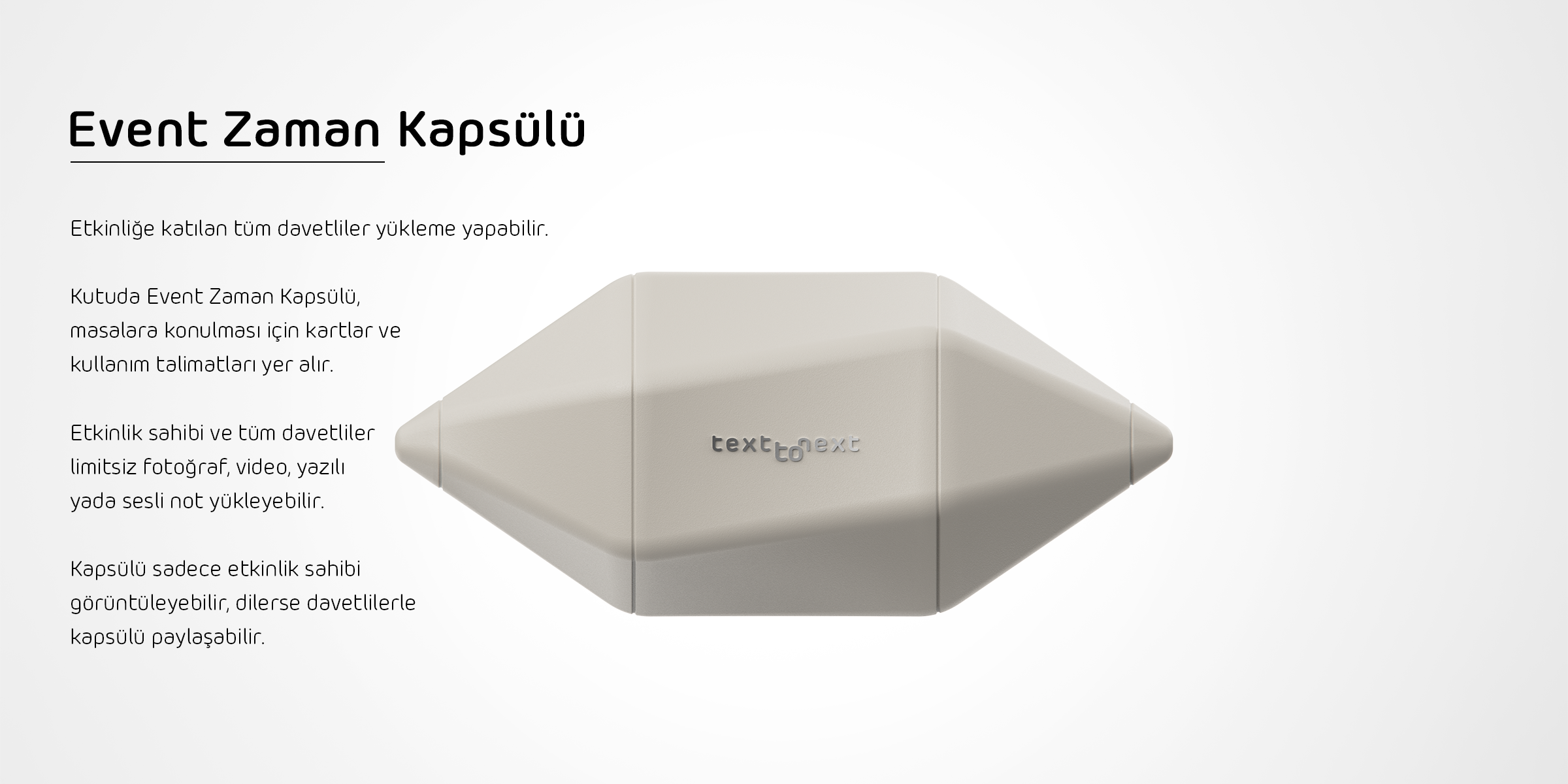 Yüklenen eşsiz anılarınızı Text To Next uygulaması üzerinden süresiz görüntüleyebilir, dilerseniz davetlileriniz ile kapsülünüzdeki fotoğraf ve videoları paylaşabilirsiniz!