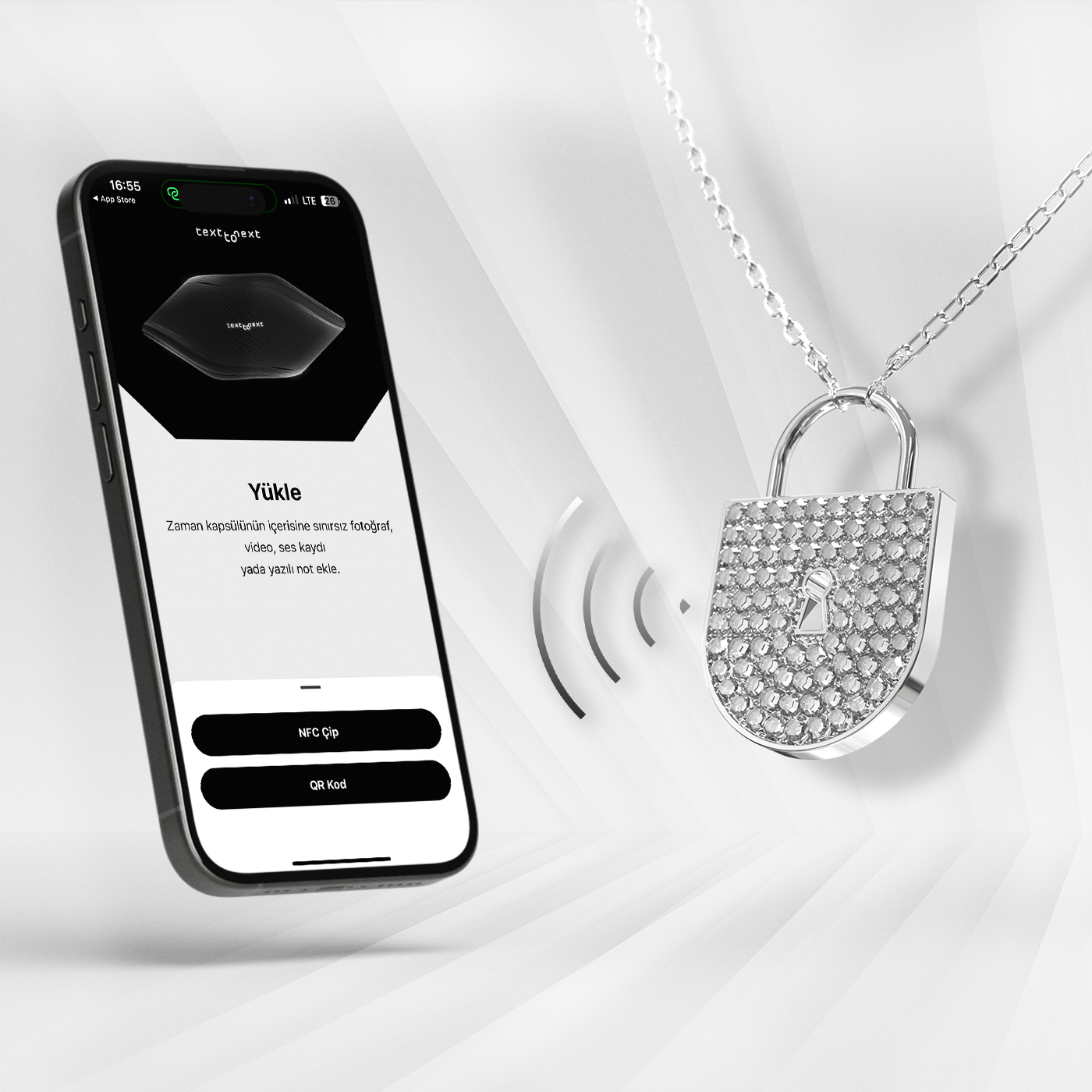 Telefonunla kolyeye dokunarak zaman kapsülüne bağlan.